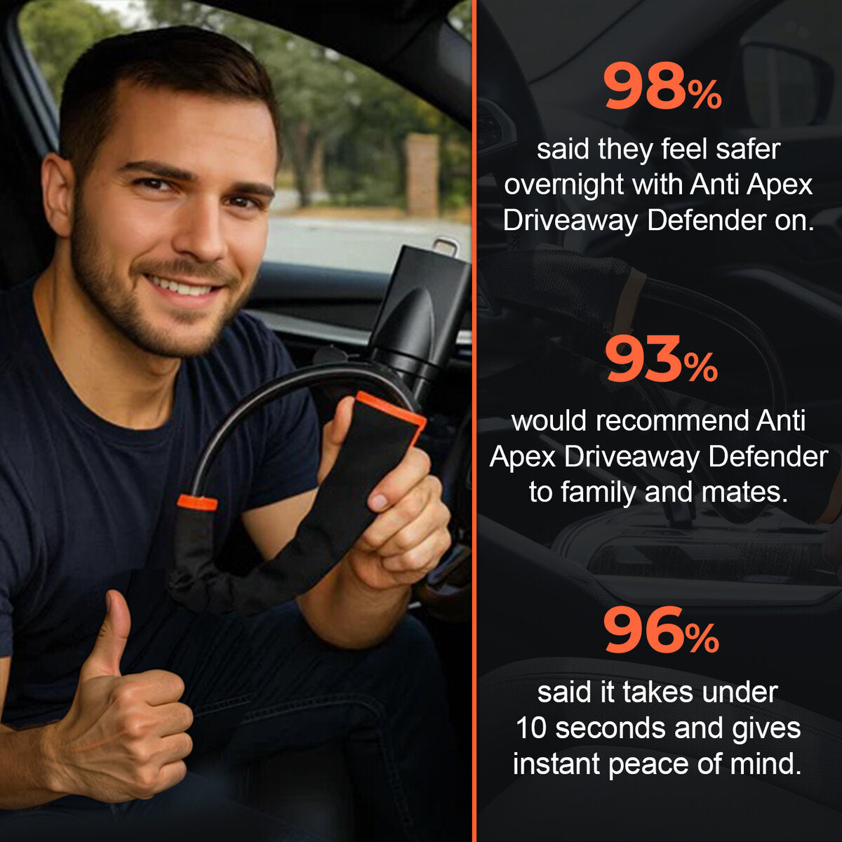 Steering wheel to seatbelt buckle in under 15 seconds. Thieves see it, they leave. Thieves miss it, they're stuck. No steering, no driving, no theft. While your neighbour's filing insurance claims, you're sleeping soundly