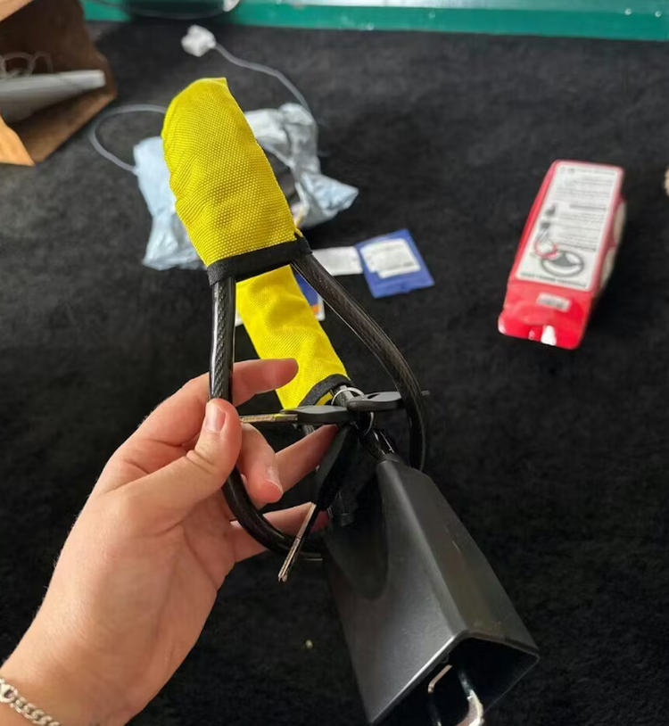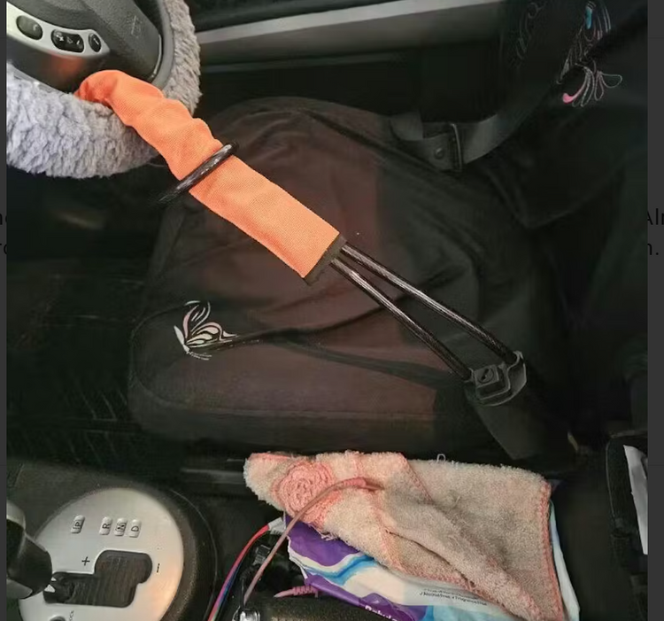 5mm military grade steel that's beaten everu tool we've tested, bolt cutters, hacksaws, prybars. all failed. PVC-coated to protect your interior, wheaterproofed for 40* summers and winterstorms. Small enough to chuck in your door pocket, tough enough to ruin a thief's night.
